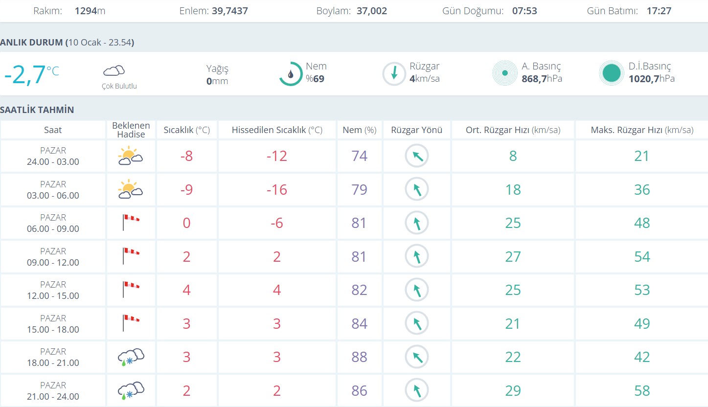 Anlık verilere göre hava sıcaklığı gece saatlerinde eksi derecelere kadar gerilerken, hissedilen sıcaklık çok daha düşük seviyelerde ölçülüyor. Gece yarısından sonra sıcaklığın -8 ila -9 derece aralığına düşmesi, hissedilen sıcaklığın ise -16 dereceye kadar inmesi bekleniyor. Bu durum özellikle açık alanlarda bulunan vatandaşlar için don ve buzlanma riskini artırıyor.