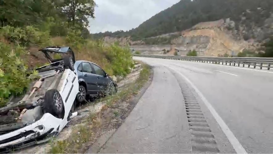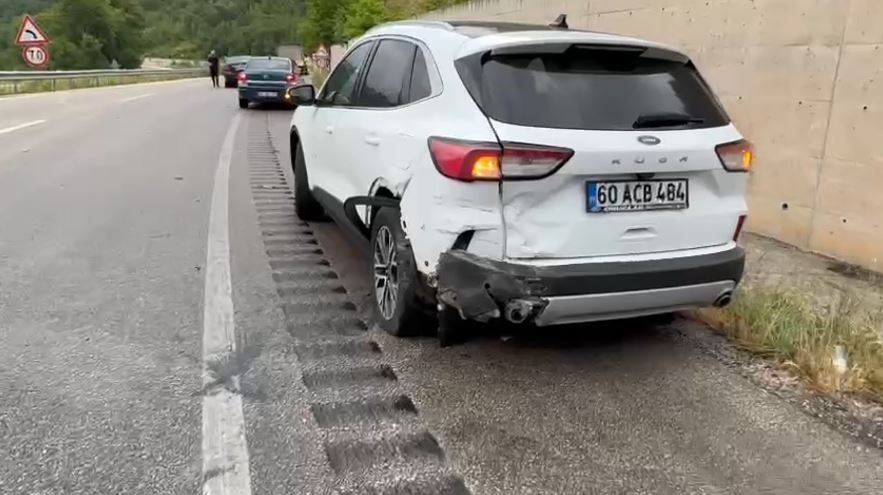 Sivas'ta Koyulhisar-Suşehri arası 4 araç yağmur sonrası oluşan kaygan zeminde neredeyse kullanılamaz hale geldi...