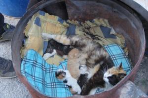 Anneyi her gün mama ve sütle besleyen polis ekipleri, boş vakitlerinde yavru kedilerin bakımını da gerçekleştiriyor.