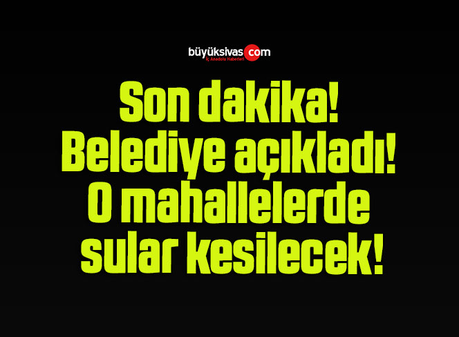 Sivas Belediyesi yaptığı açıklamada: ” 06.12.2022 Salı 14:00’da başlayıp 07.12.2022 Çarşamba günü Saat 12:00 saatleri arasında su kesintisi yapılacaktır.” ifadelerine yer verildi.