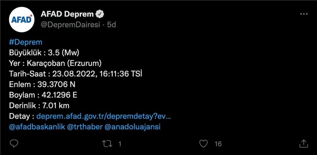 Erzurum'da deprem oldu. Merkez üssü Karaçoban ilçesi olan 3.5 şiddetindeki deprem paniğe neden oldu.