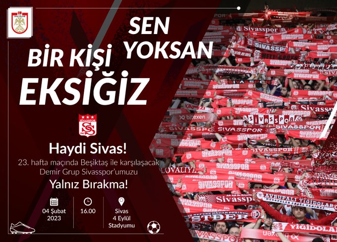 Beşiktaş ile karşılaşacağı müsabakada Sivasspor'umuzu yalnız bırakma.