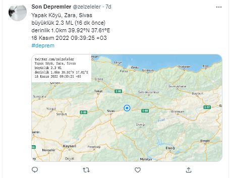 Sivas'ın Zara içesinde saat 09:39'da deprem meydana geldi.