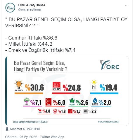 ORC Araştırma tarafından durum sosyal medya üzerinden de şöyle paylaşıldı: