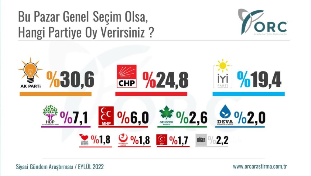 ORC'nin 17-21 Eylül 2022 tarihleri arasında 33 ilde, toplam 6 bin 190 kişiyle yaptığı anket sonucunda çarpıcı sonuçlar yer aldı.