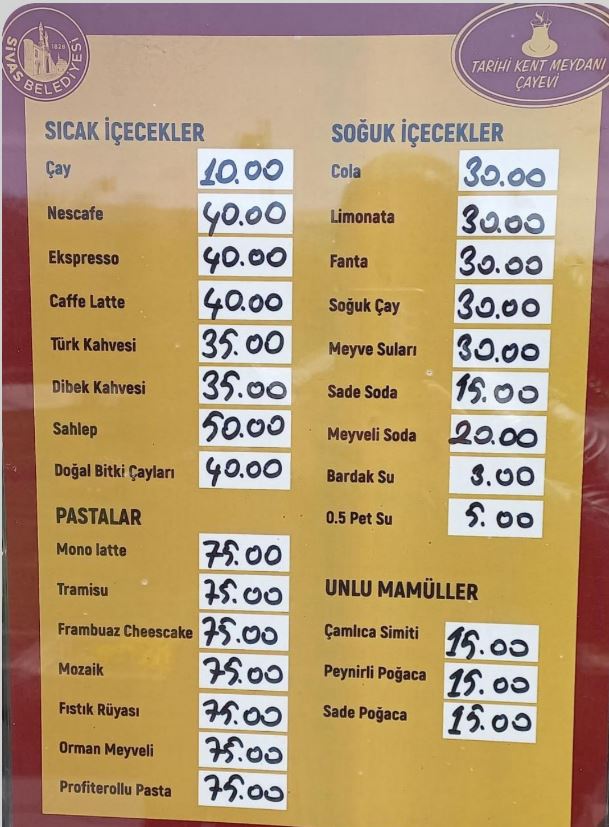 Belediye Başkanı seçilen Adem Uzun yönetimindeki Sivas Belediyesi'ne ait kent meydanında yer alan belediye sosyal tesislerinde satılan yiyecek ve içecek fiyatlarına zam geldi...