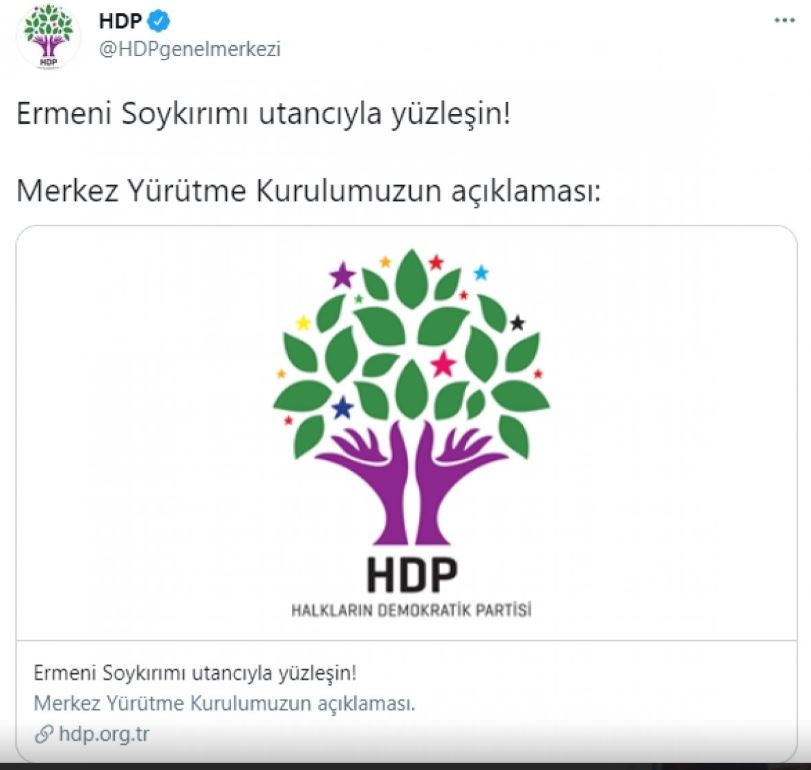 HDP sözde 1915 olaylarına destek verdi. Terör örgütü PKK'ya yakınlığı ile bilinen HDP, asılsız Ermeni soykırımı hakkında skandal bir bildiri yayınladı. Her yıl olduğu gibi 24 Nisan'da 1915'teki sözde Ermeni soykırımına ilişkin yalan propagandası devam ediyor..