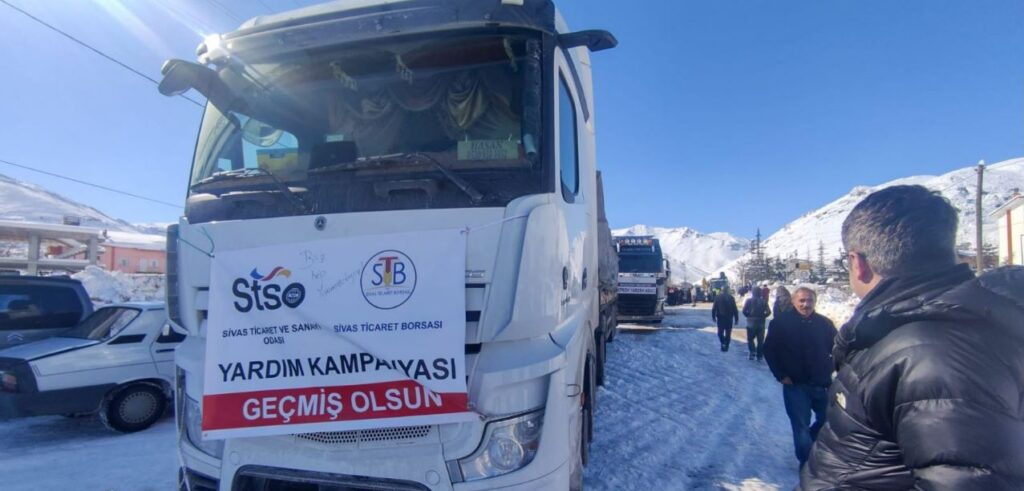 Afetzede vatandaşlarımızın acil ihtiyaçlarının karşılanması için, Sivas Ticaret ve Sanayi Odası tarafından başlatılan yardım kampanyası ile toplanan ve insani yardım malzemelerinden oluşan 7 adet yardım tırı afetzede vatandaşlarımıza ulaştırıldı.