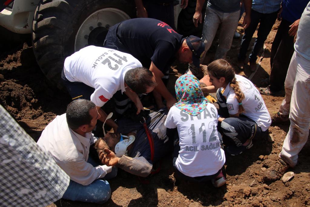 Şarkışla Belediyesi itfaiye ve İl Afet ve Acil Durum (AFAD) Müdürlüğü ekiplerinin çalışması sonucu, Yılmaz yaklaşık 3 saat sonra toprak altından çıkartılabildi.