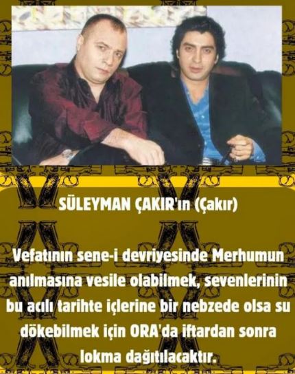 Her ölüm yıldönümünde dizi hayranları tarafından unutulmayarak anılan Süleyman Çakır için bu kez Sivas'ta Ora Playstation'da lokma dağıtılacak.