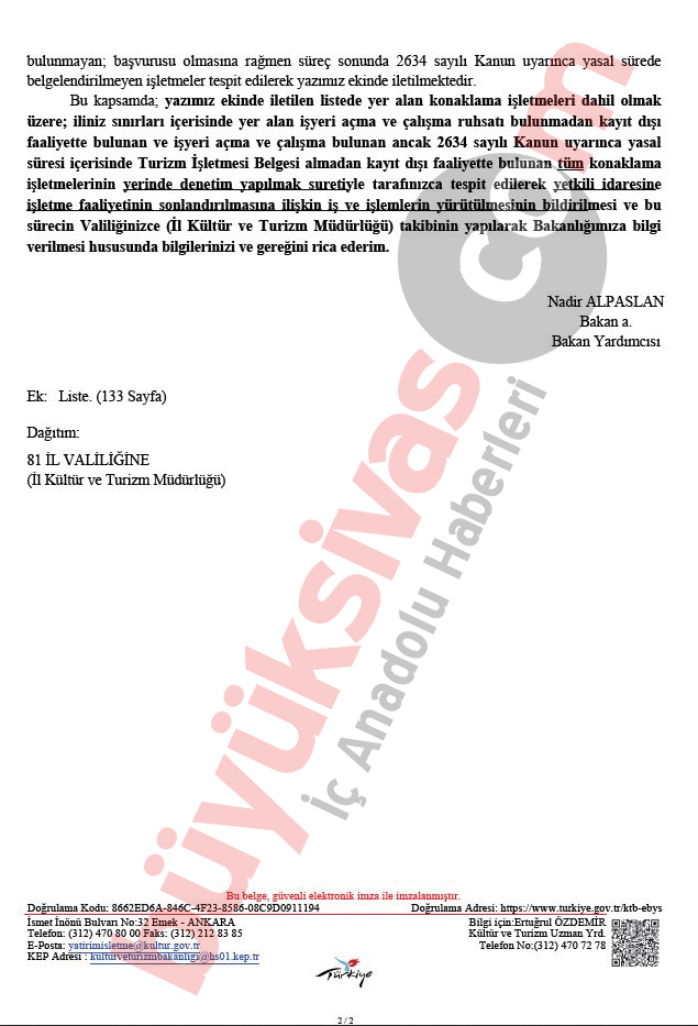 Sivas’ta birçok otel, Kültür ve Turizm Bakanlığı tarafından illere gönderilen “Ruhsatsız Faaliyet Gösteren Konaklama İşletmeleri” yazısı doğrultusunda mühürlendi.