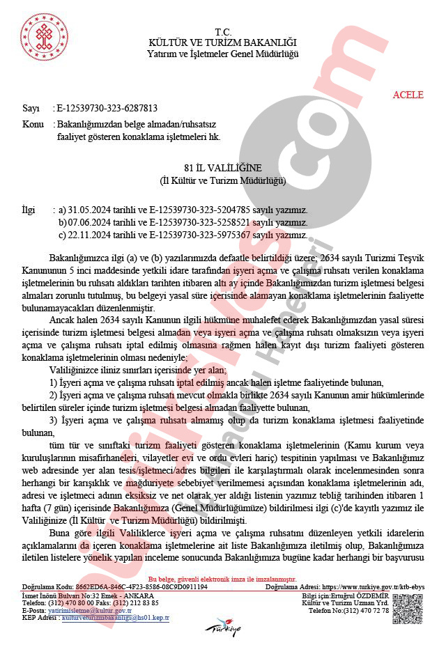 Sivas’ta birçok otel, Kültür ve Turizm Bakanlığı tarafından illere gönderilen “Ruhsatsız Faaliyet Gösteren Konaklama İşletmeleri” yazısı doğrultusunda mühürlendi.
