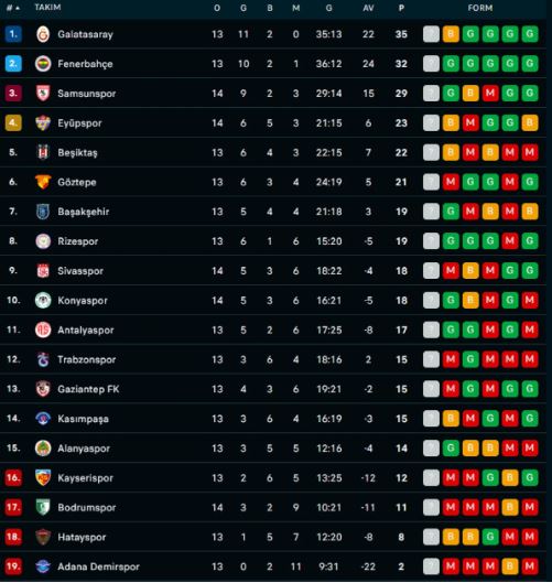 Süper Lig'de 14. haftanın ardından oluşan puan durumu! Haftaya rakip Galatasaray!