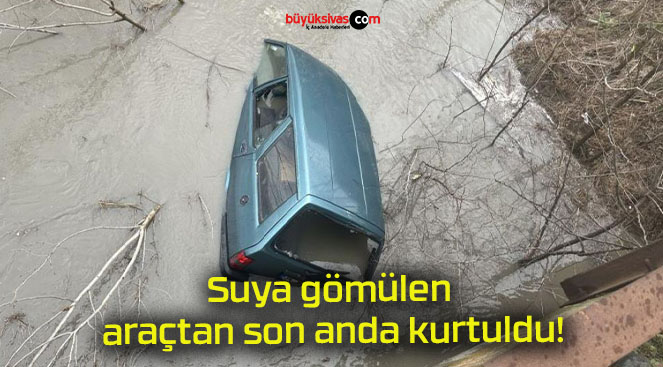 Suya gömülen araçtan son anda kurtuldu!