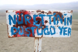 Sivas’ın Ulaş ilçesinde ‘Nurettin’in düştüğü yer’ yazılı tabela görenleri düşündürüyor.