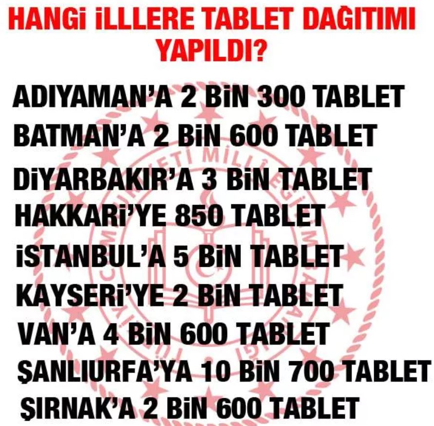 HANGİ İLLERE TABLET DAĞITIMI YAPILDI?