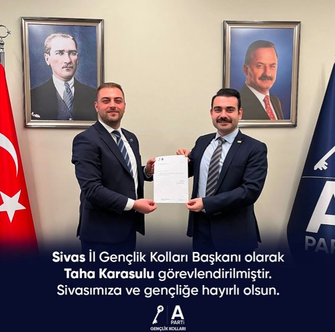 A Parti Sivas teşkilatında önemli bir atama gerçekleşti. Taha Karasulu, A Parti Sivas İl Gençlik Kolları Başkanı olarak görevlendirildi.