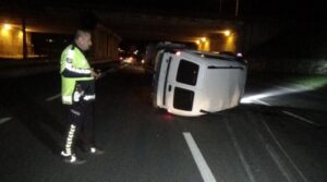 Kaza, gece saatlerinde D-100 Karayolu Kervan Köprülü Kavşak mevkiinde meydana geldi. Edinilen bilgiye göre, Ankara istikametinde giden S.A. idaresindeki 81 ABF 012 plakalı hafif ticari araç, kontrolden çıkarak takla attı.