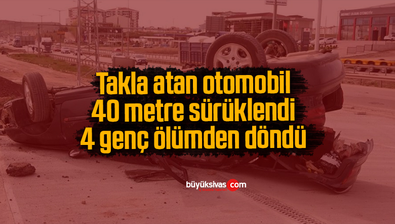 Kırıkkale’de takla atan otomobilin 40 metre sürüklendiği kazada 4 genç ölümden döndü.