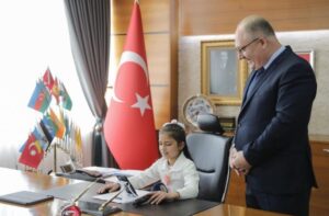 Sivas Belediye Başkanı Hilmi Bilgin ise makamını Ozmuş Köyü İlkokulu 3. sınıf öğrencisi Hafza Hüma Doğan'a devretti. Bir süreliğine Sivas Belediye Başkanı olan minik Hafza Hüma, Başkan Hilmi Bilgin ile sohbet ederek belediyelerin görev ve sorumlulukları ile işleyişi hakkında bilgi aldı.