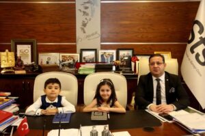 Yürütülen çalışmalarla ilgili minik başkana bilgi veren Başkan Mustafa Eken, “23 Nisan Ulusal Egemenlik ve Çocuk Bayramı vesilesi ile bizde bugün başkanlık koltuğunu Başkanımız Yiğit Temel’e, başkan yardımcılığı koltuğumuzu da Gökçe Baltacı hanımefendiye bırakıyoruz. Kendileriyle bugün Ticaret ve Sanayi Odası olarak neler yapıyorlar, neler yapacaklar, hedefleri nedir? Kendilerine soracağız” dedi.