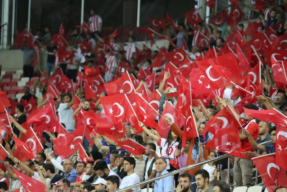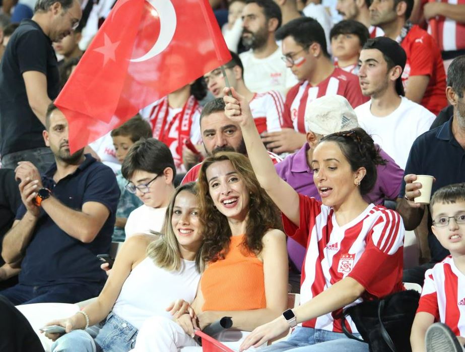 27 bin 532 kapasiteli stadyum, dağıtılan bayraklarla kırmızı beyaza bürünürken, Sivassporlu taraftarlar müsabaka esnasında görev yapan Mehmetçiklere de tezahüratla destek verdiler.