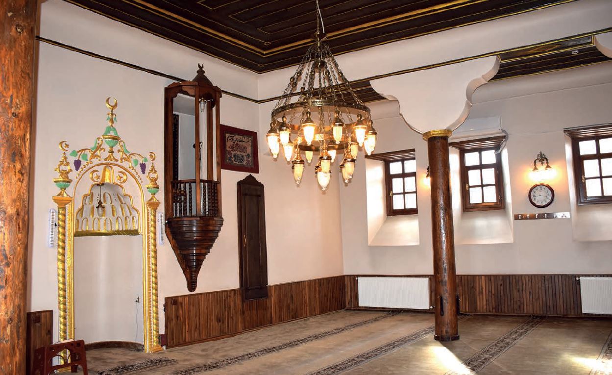 Kuzey cephesinde yer alan son cemaat mahallinin güneybatı köşesinde tek şerefeli ahşap minaresi bulunan mescit, özgün yapısıyla dikkat çekmektedir. Mescit hariminde ise minber duvar içerisine açılmış, ayrıca nişe balkon yapılarak harim daha ferah bir hale getirilmiştir.