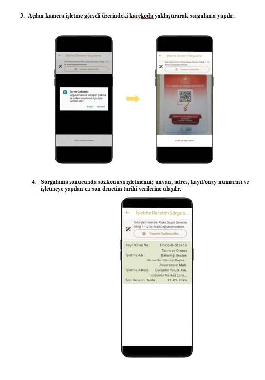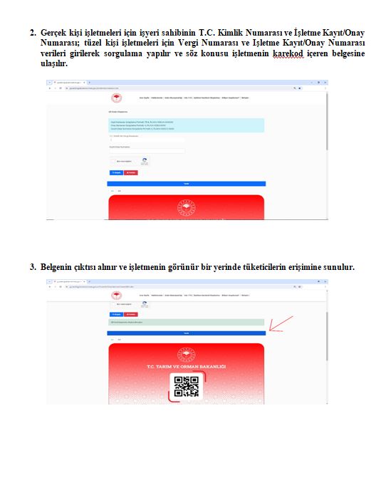 Her bir gıda işletmesine özel olarak hazırlanan karekod içeren görseller, https://guvenilirgida.tarimorman.gov.tr/ adresi üzerinden işletmeler tarafından gönüllü olarak indirilebilecek. Bu görsellerin tüketicilerin kolaylıkla görebileceği alanlarda sergilenmesi tavsiye ediliyor.