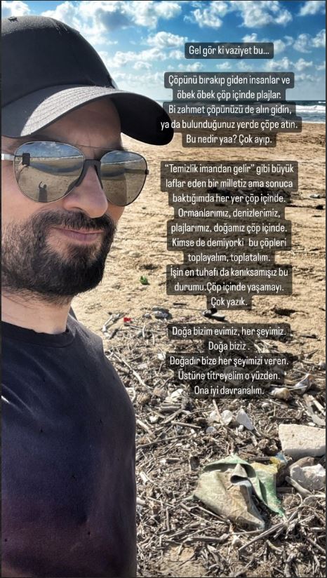 “Gel gör ki vaziyet bu… Çöpünü bırakıp giden insanlar ve öbek öbek çöp içinde plajlar. Bir zahmet çöpünüzü de alın, gidin ya da bulunduğunuz yerde çöpe atın. Bu nedir ya? Çok ayıp. ‘Temizlik imandan gelir’ gibi büyük laflar eden bir milletiz ama sonuca baktığımda her yer çöp içinde. Ormanlarımız, denizlerimiz, plajlarımız, doğamız çöp içinde.