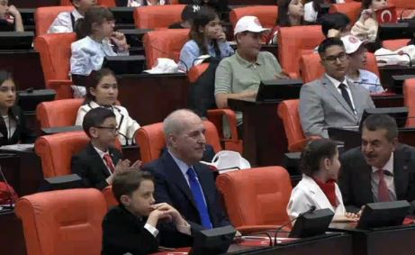 Çocukların katıldığı oturumda TBMM Başkanı Numan Kurtulmuş, koltuğunu devretti.