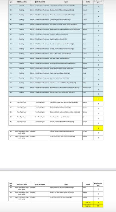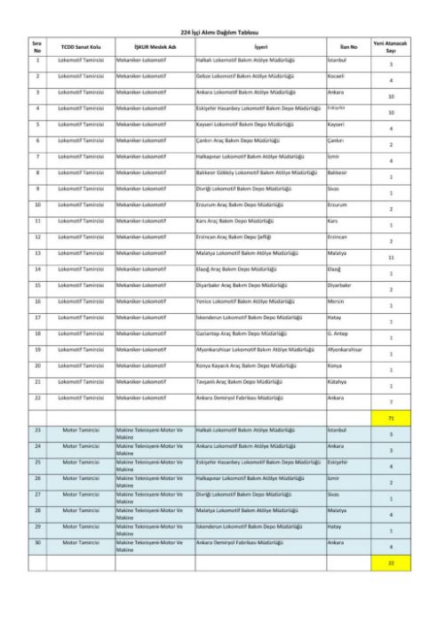 Türkiye Cumhuriyeti Devlet Demiryolları (TCDD) Taşımacılık AŞ, farklı illerde görev yapmak üzere toplam 224 daimi işçi alımı gerçekleştirecek.