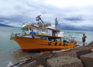 Denizdeki dev dalgalar sebebiyle sürüklenen balıkçı teknesi, İlişi Limanı girişinde kayalıklara doğru savruldu. Balıkçı teknesinin kayalıklara çarpması neticesinde teknede bulunan 2 balıkçı, denize düştü.