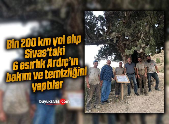 Bin 200 km yol alıp Sivas'taki 6 asırlık Ardıç’ın bakım ve temizliğini yaptılar