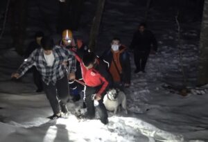 AFAD ekipleri dondurucu soğukta mahsur kalan 3 genç ve yanlarında getirdikleri köpekleri yaklaşık 2 saat süren kurtarma operasyonuyla kurtardı. Kurtulan gençler, ''Bayrağımız dalgalansın da gerekirse biz bu gece dağda da yatarız'' dedi.