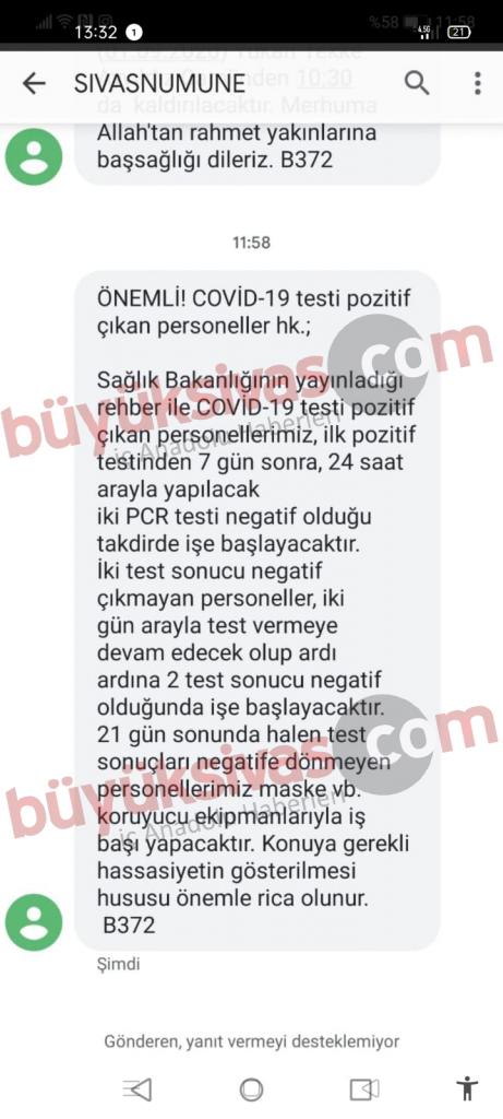 Mesajda en can alıcı nokta "...test sonucu negatife dönmeyen personellerimizin maske vb. koruyucu ekipmanlarıyla iş başı yapacaktır. Konuya gerekli hassasiyetin gösterilmesi hususu önemle rica olunur" kısmıydı.