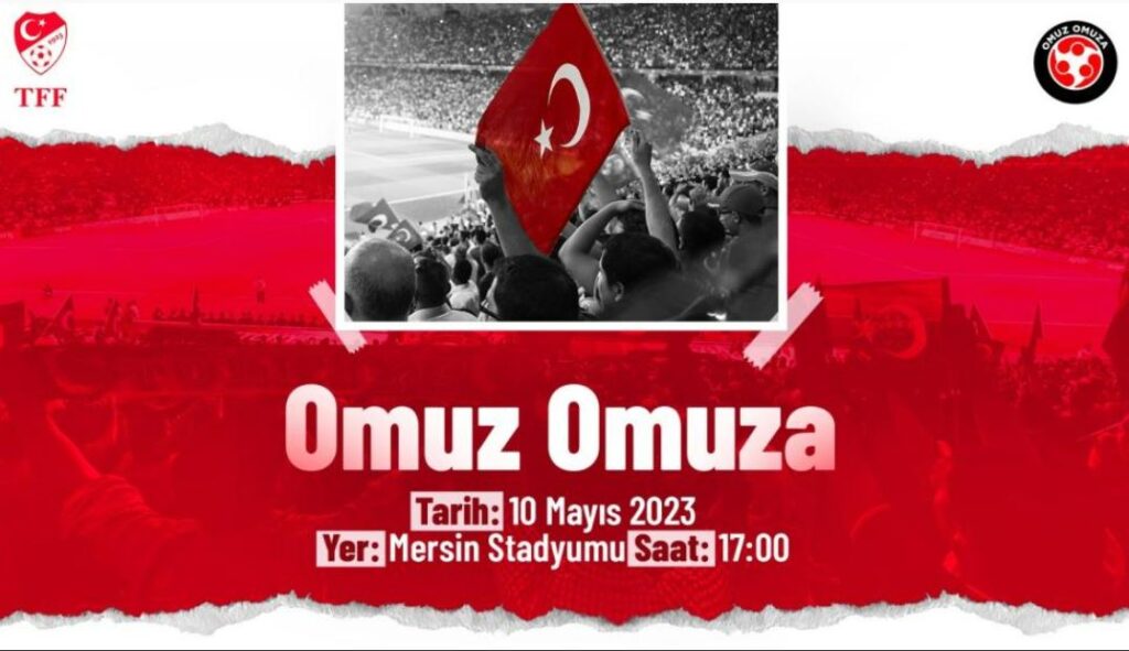 "Deprem nedeniyle ligden çekilmek zorunda kalan kulüplerimizden Hatayspor’un gelecek sezon hem takım olarak çalışmalarını sürdüreceği Mersin Erdemli Tesisleri hem de karşılaşmalarını oynayacağı Mersin Stadyumu’nun yer aldığı Mersin ilimizde yaşayan 110 bin depremzede vatandaşımızla buluşacağımız, tüm vatandaşlarımızın tribünlerden ücretsiz olarak izleyebileceği “TFF Omuz Omuza Gösteri Maçı”, 10 Mayıs 2023 Çarşamba günü saat 17.00’de başlayacak olup futbolcular, sanatçılar ve depremzede çocukların katılımı ile gerçekleşecektir." (İHA)