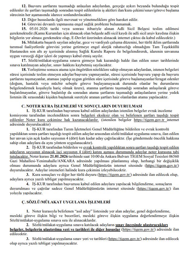 Başvurular, 29 Aralık 2025 ile 2 Ocak 2026 tarihleri arasında Türkiye İş Kurumu (İŞKUR) üzerinden gerçekleştirilecek. Başvuru sürecinin ardından kura ve değerlendirme aşamalarına geçileceği belirtildi.