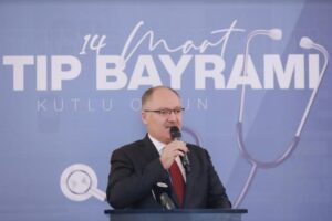 Hastaların tutan eli ve gören gözü olarak varlığınızla bizlere güven verdiniz. Siz değerli doktorlarımıza, tıp fakültelerimizde geleceğin hekimlerini yetiştiren kıymetli hocalarımıza, tüm sağlık çalışanlarımıza ayrı ayrı şükranlarımı sunuyorum. Çünkü sizler eşrefi mahlûkat olan, yaratılmışların en şereflisi olan insana verilebilecek en güzel hizmeti ifa ediyorsunuz.” dedi.
