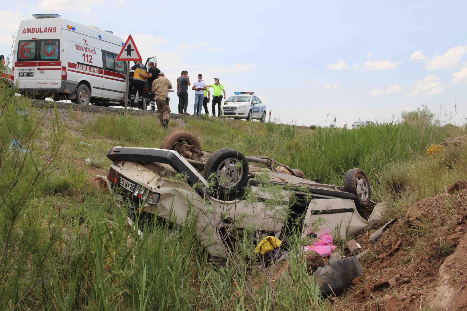 Şarampole devrilen otomobil ters dönerek durabilirken araçta bulunan K.E.O., C.E.O., S.O., H.O. ve araç sürücüsü yaralandı.