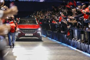 Togg'u üretim bandından alan Cumhurbaşkanı Erdoğan, Anadolu kırmızı renkli araçla törenin yapıldığı salona giriş yaptı.