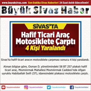 Sivas'ta hafif ticari aracın motosiklete çarpması sonucu 4 kişi yaralandı.