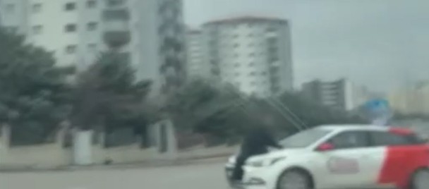 Sürücü kursu eğitmeni olduğu belirtilen bir kişi, tartıştığı sürücüyü darbettikten sonra kaput üzerinde sürükleyerek kilometrelerce yol aldı.