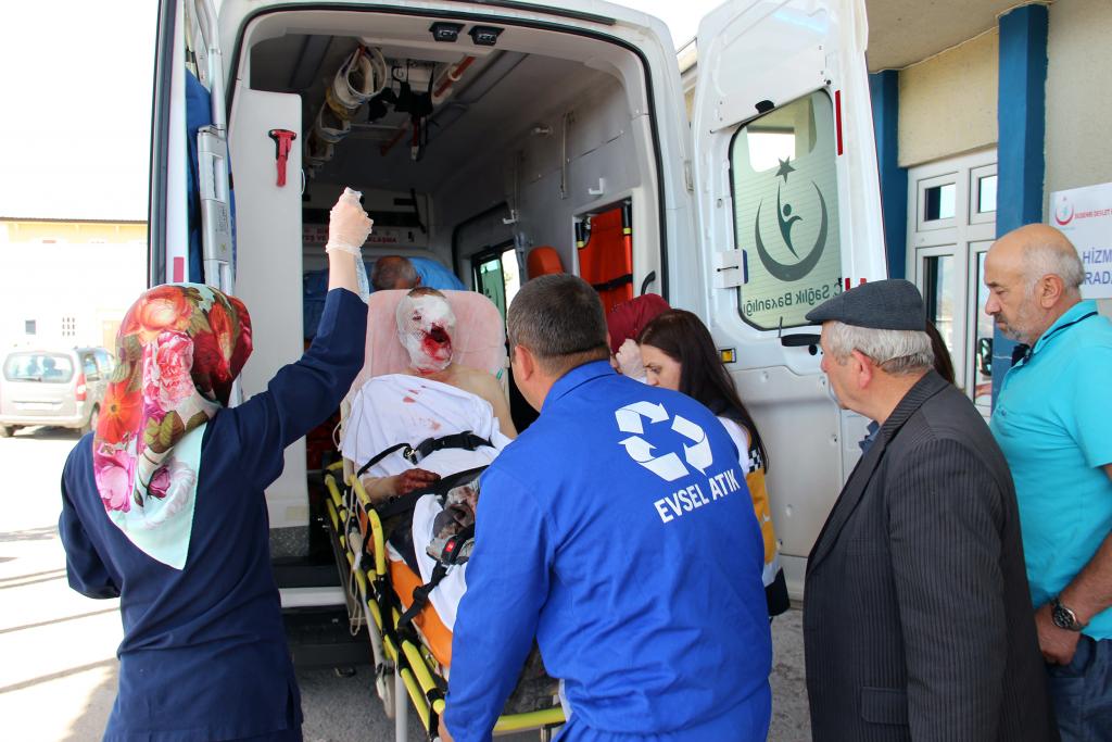 Aparatın bağlı bulunduğu hidrolik çubuğunun aniden hareket etmesi üzerine Şahin'in kafası, traktörün "T demiri" arasına sıkıştı.