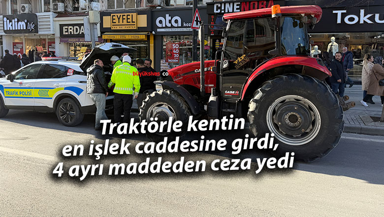Edinilen bilgilere göre sürücü belgesi bulunmayan İ.C.Y., yağ kaçağı bulunan 58 ZD 129 plakalı traktör ile sanayiye gitmek istedi. Büyük araç trafiğine kapalı olan İnönü Bulvarına giren sürücü trafik polislerince durduruldu. Polis ekiplerince yapılan sorgulamada traktörün sigorta ve muayenesinin olmadığı belirlendi. Sürücü ve traktör sahibine ehliyetsiz araç kullanmak, sigorta ve muayene yaptırmamak ve yasaklı saatte kara yolunda bulunmaktan para cezası uygulandı. Toplamda 41 bin 507 TL para cezası uygulanan traktör sürücüsü ve yakınları, sigorta yapılmasının ardından bulvardan ayrıldı.