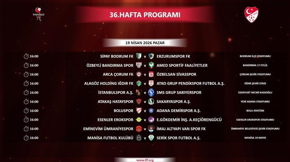 Bu kapsamda 36. hafta müsabakalarının tamamı 19 Nisan Pazar günü saat 16.00’da başlayacak.