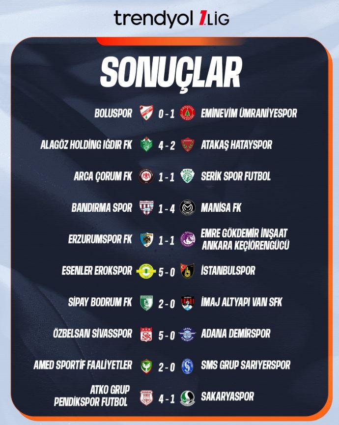 Trendyol 1. Lig’de 7. Hafta Tamamlandı! İşte Sonuçlar ve Puan Durumu!