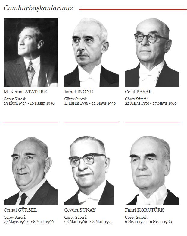 İşte Türkiye Cumhuriyeti'nin sırasıyla Cumhurbaşkanları..