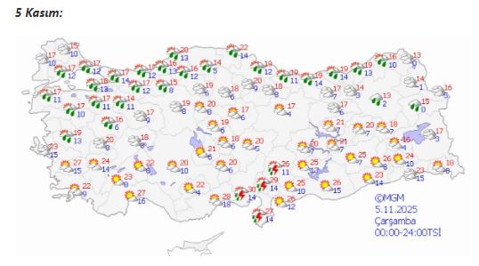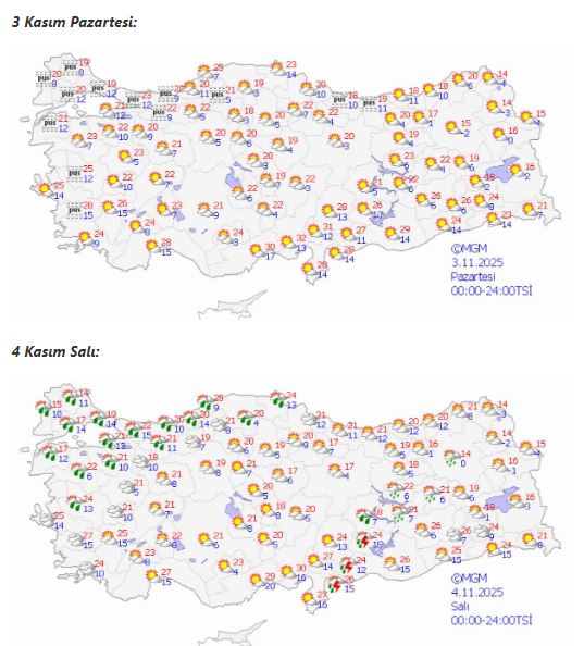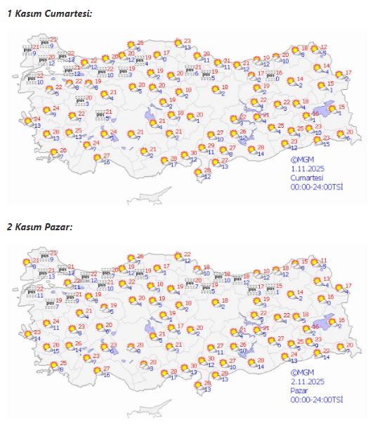 Meteoroloji Genel Müdürlüğü (MGM) verilerine göre, ülke genelinde Kasım ayının ilk haftasında mevsim normallerinin oldukça üzerinde sıcaklıklar yaşanmaya devam edecek.