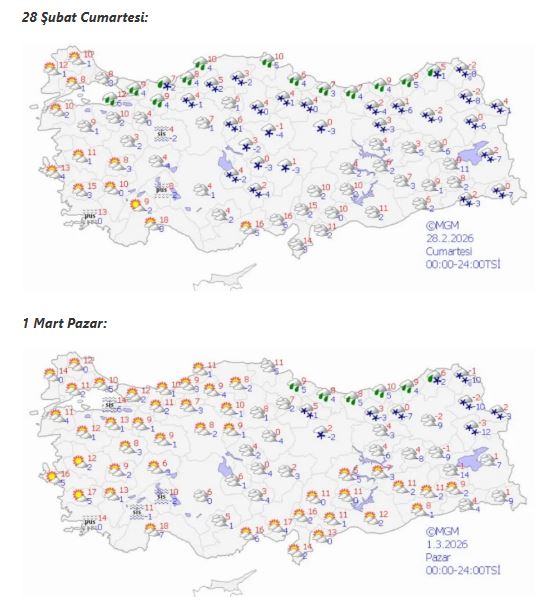 Pazar günü iç ve doğu bölgelerde sıcaklıkların -3 ile 5 derece aralığında seyretmesi bekleniyor. Karadeniz kıyıları ve Doğu Anadolu’da kar yağışının devam edeceği tahmin edilirken, batı kesimlerde yağışların azalacağı öngörülüyor. İç kesimlerde pus ve sis olaylarının görüş mesafesini düşürebileceği belirtiliyor.