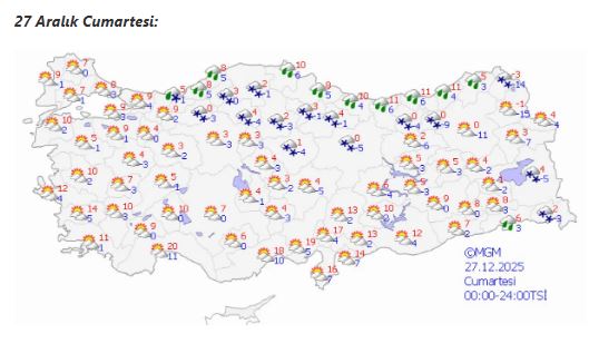 Cuma ve cumartesi günleri ise soğuk hava dalgasının zirveye ulaşacağı tahmin ediliyor. İç ve doğu bölgelerde yoğun kar yağışı beklenirken, batı kıyılarda yağmur geçişleri görülebilecek. MGM, özellikle iç ve doğu kesimlerde buzlanma, don ve sis nedeniyle ulaşımda dikkatli olunması uyarısında bulundu.